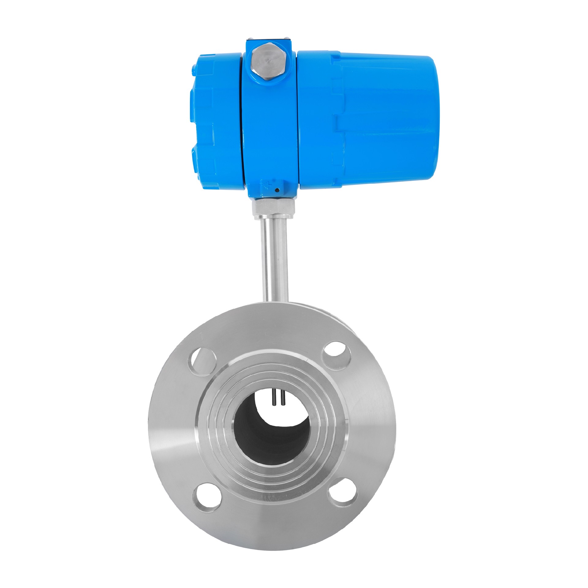 A) 一體型插入式應插入至被測管路軸心,所以測量桿長度視測管徑大小而定。訂貨時應說明。若不能插入至管道軸心,將有廠方提供標定系數, 以完成準確測量。